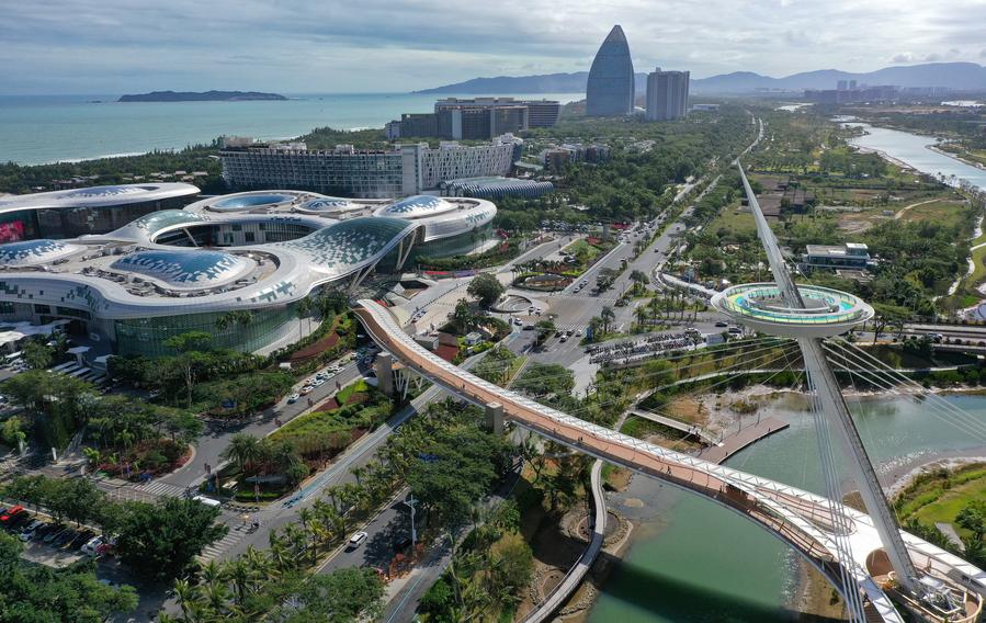 An aerial drone photo taken on Nov. 30, 2025 shows a duty-free shopping mall in Sanya, south China's Hainan Province. (Xinhua/Guo Cheng)