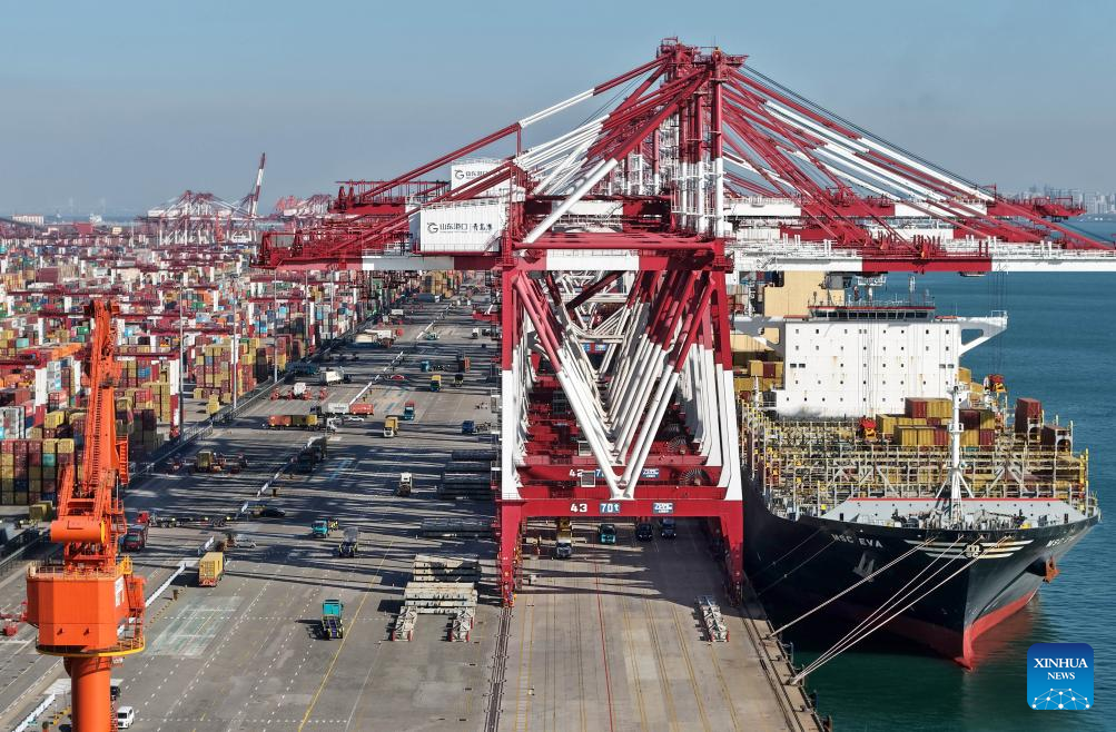 Qingdao Port has continuously expanded its international logistics network, with nearly 240 routes connecting over 700 ports in over 180 countries and regions worldwide. (Xinhua/Li Ziheng)