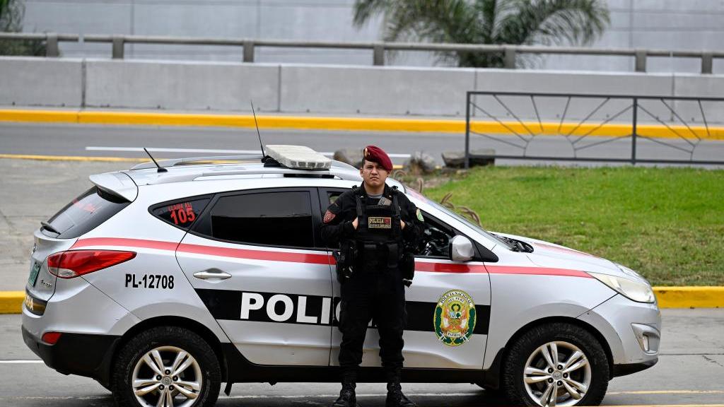Police officers guard outside Lima Convention Center before APEC meeting/