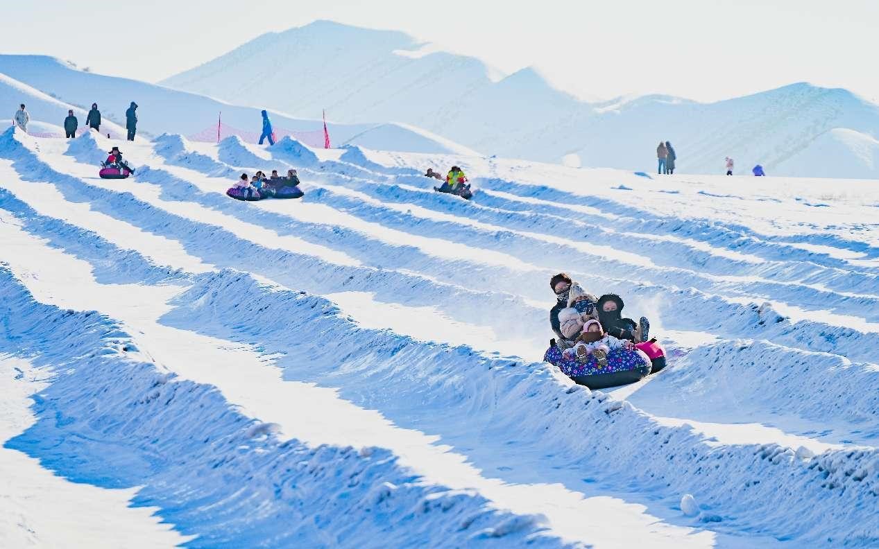 Tourists have fun in a ski resort in Changji Hui autonomous prefecture, northwest China's Xinjiang Uygur autonomous region, Feb. 13, 2024.…