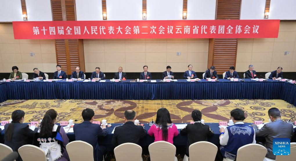 A group meeting of deputies from the delegation of Yunnan Province is held at the second session of the 14th National People's Congress (NPC) in Beijing, capital of China, March 10, 2024. (Xinhua/Cai Yang)A group meeting of deputies from the delegation of Yunnan Province is held at the second session of the 14th National People's Congress (NPC) in Beijing, capital of China, March 10, 2024.…